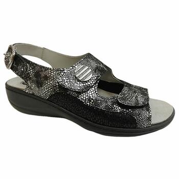 Сандалии женские. Регулировка по полноте: эластичные вставки с двух сторон, две застеки велькро, пяточный ремешок с пряжкой. Съемная анатомическая стелька.Гибкая подошва с аморизирующей вставкой в области пятки.